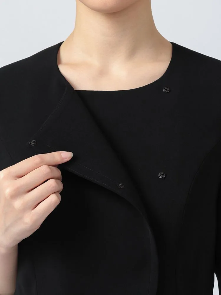 【ウォッシャブル】フォーマルジャケット/前開きレース衿ワンピースアンサンブルストレッチ黒無地STOVEL&MASONWHITE通年礼服【レディース】