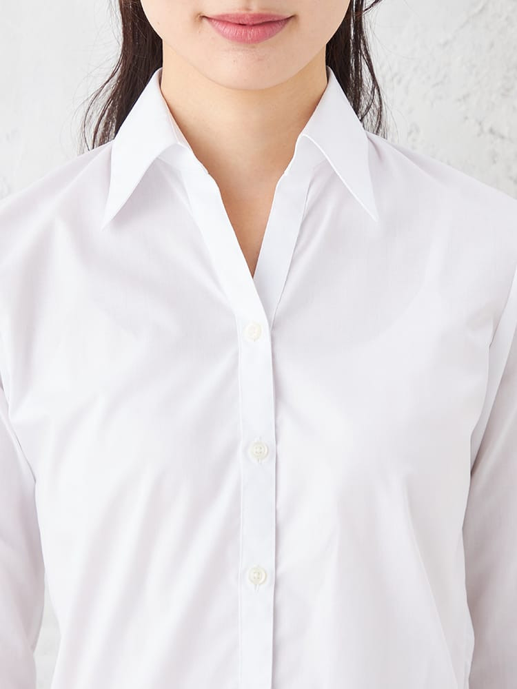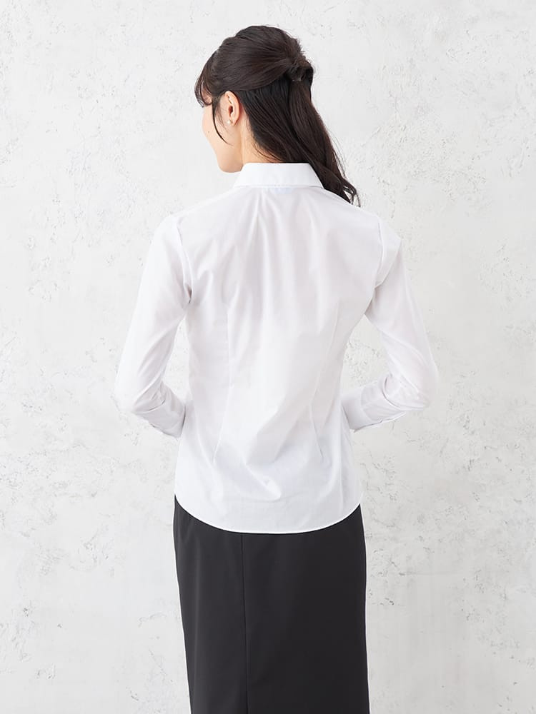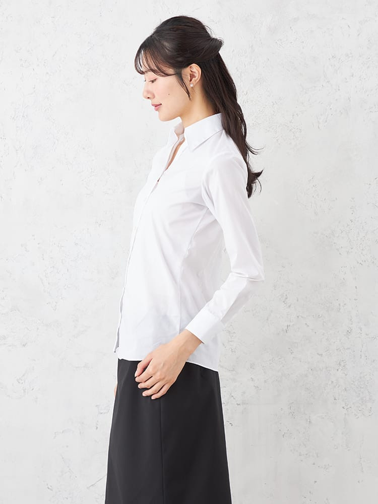 【形態安定】ブラウス 長袖 GraceField 白ブロード スキッパー ストレッチ リクルート 通年【レディース】