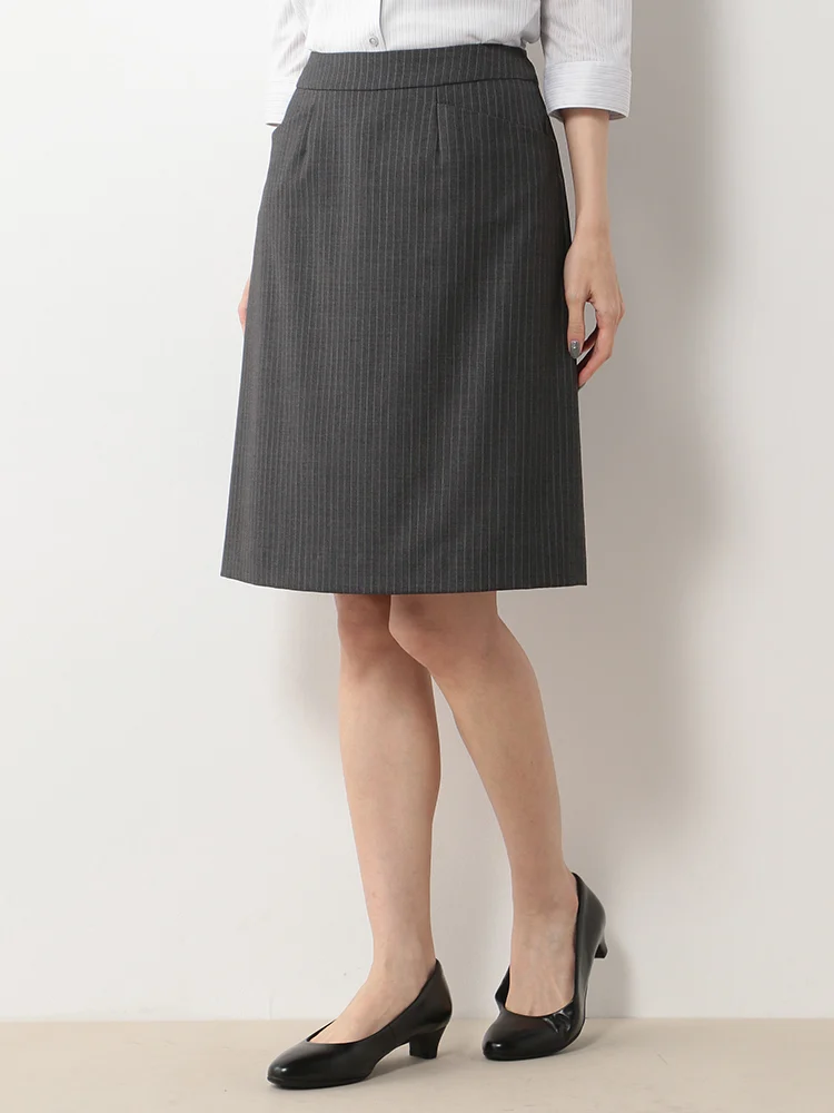 裾へと広がるきれいなシルエットがクリーンなビジネススタイルを演出するスカートです。