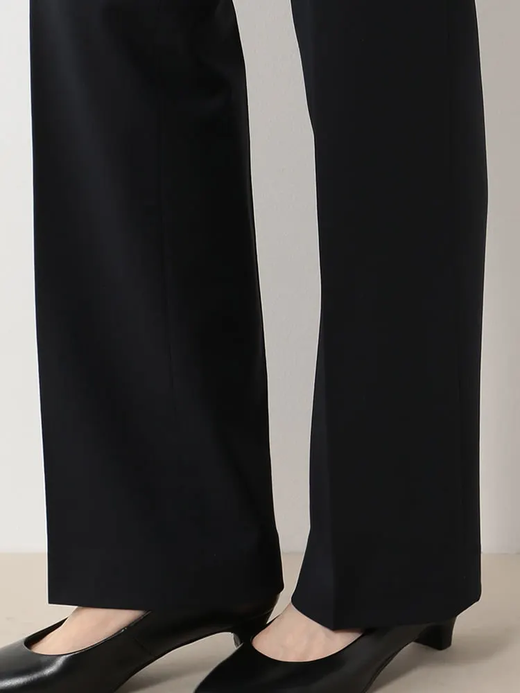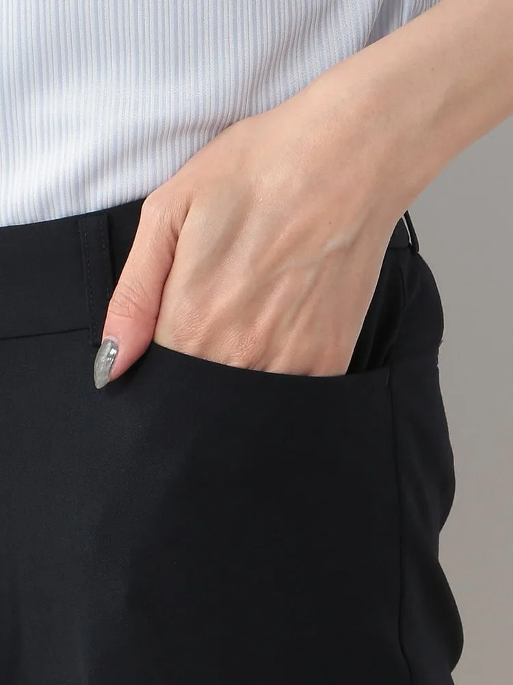 ストレートパンツ with 黒シャドーストライプ ウォッシャブル 2WAYストレッチ【レディース】