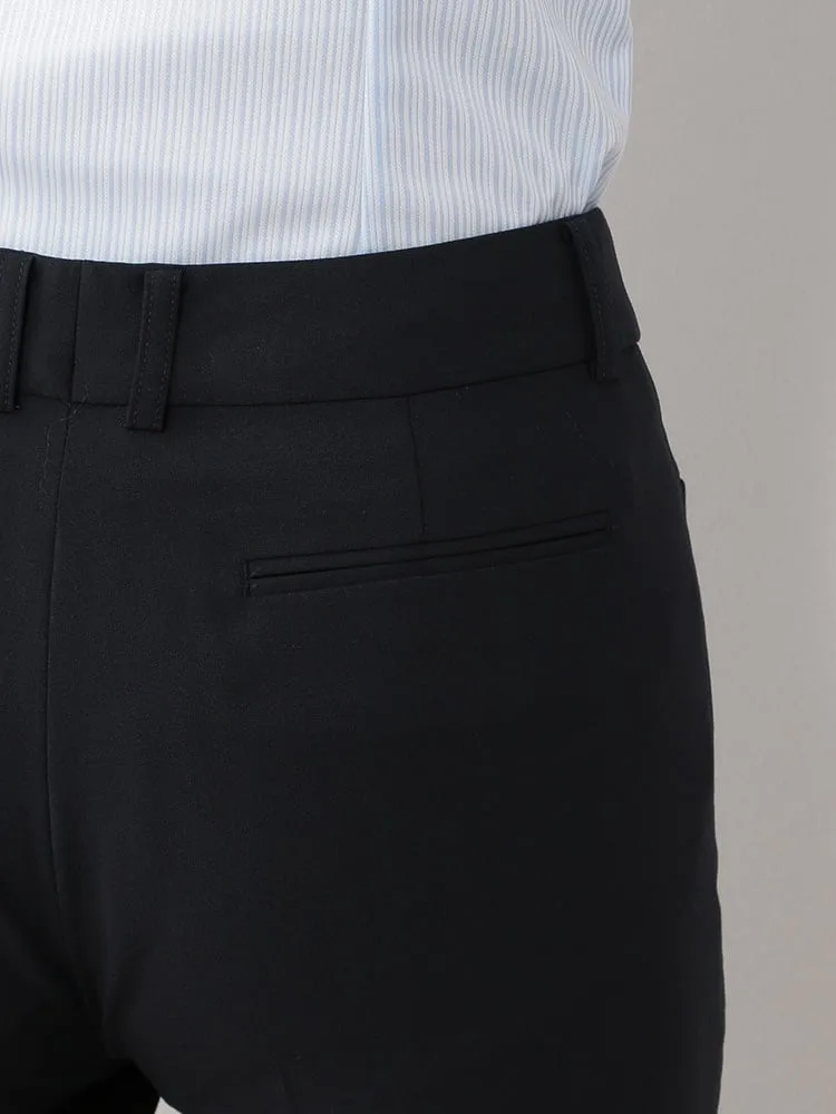 【ウォッシャブル】ウィメンズフルレングスパンツストレッチSOFFICEブラック無地通年【レディース】