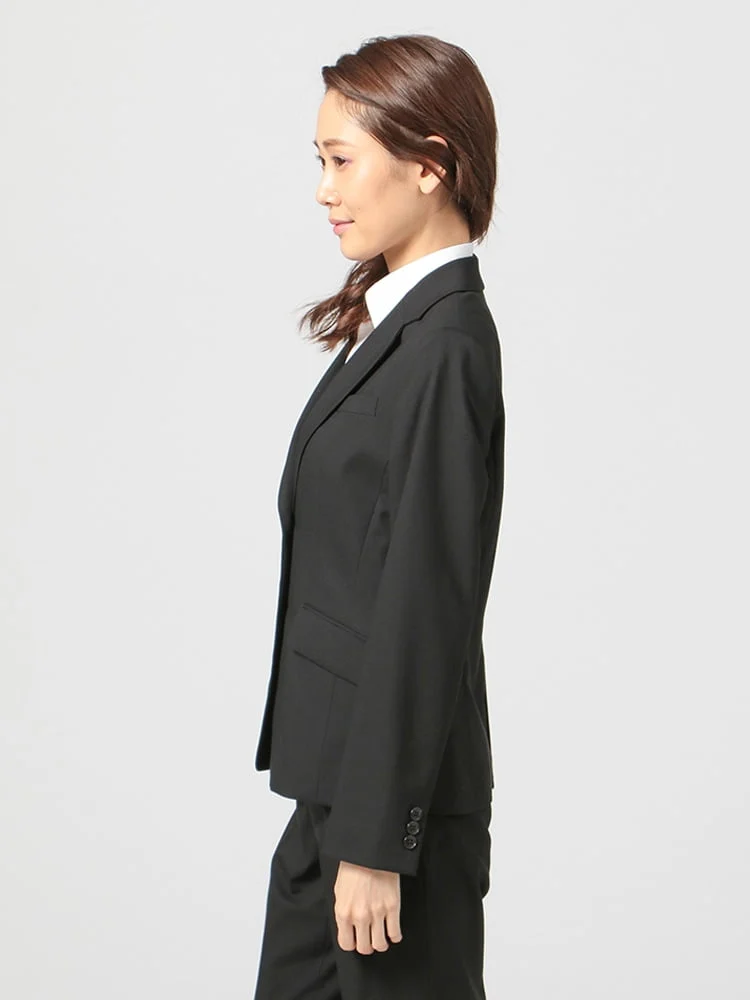 【ウォッシャブル】ジャケット2つボタンストレッチブラック無地通年【レディース】
