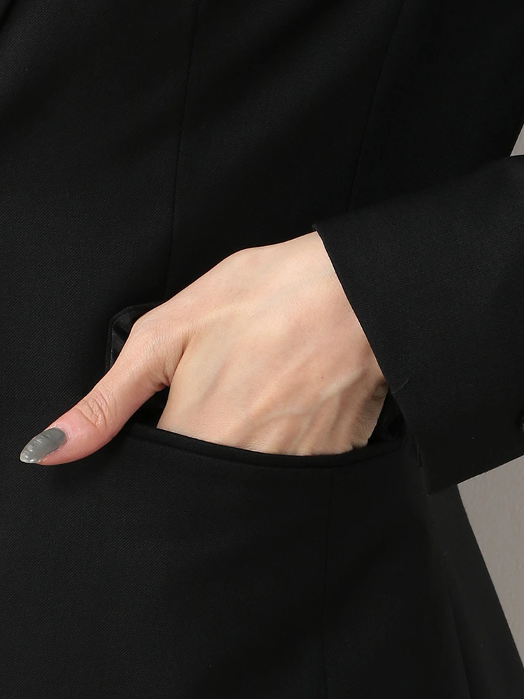 2つボタンのデザインで、クラシックなスタイルを演出。落ち着きと品のあるアイテムです。