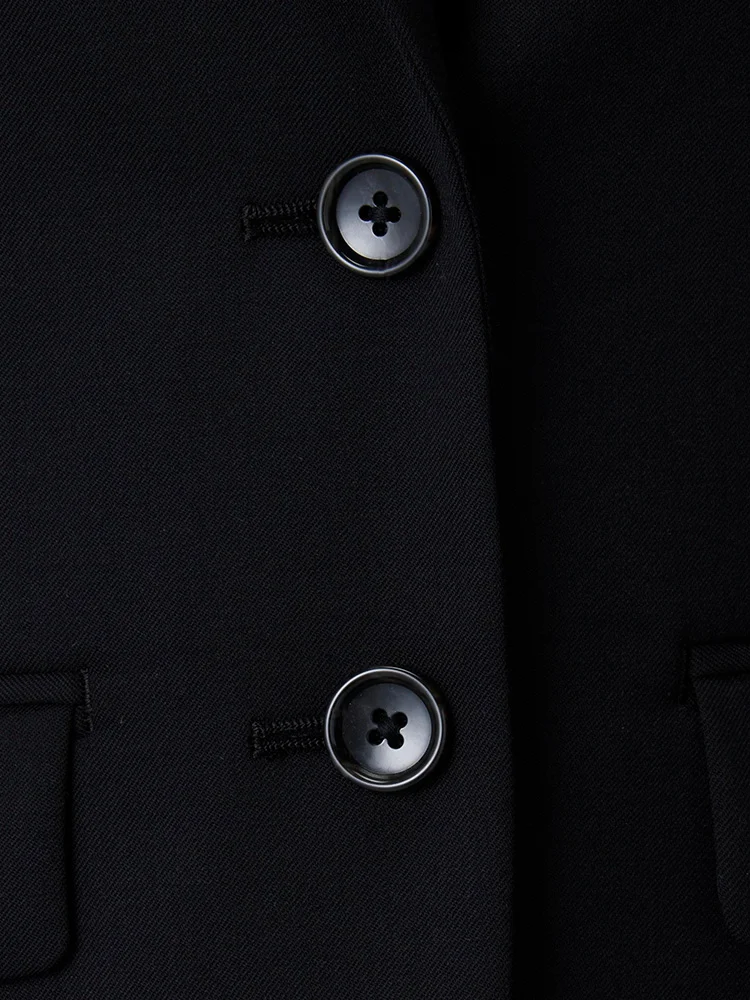 2つボタンのデザインで、クラシックなスタイルを演出。落ち着きと品のあるアイテムです。