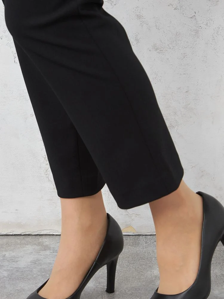 【ストレッチ】フォーマル3点セットジャケットパンツブラウス黒無地YUMIKATSURAEnForm通年礼服【レディース】