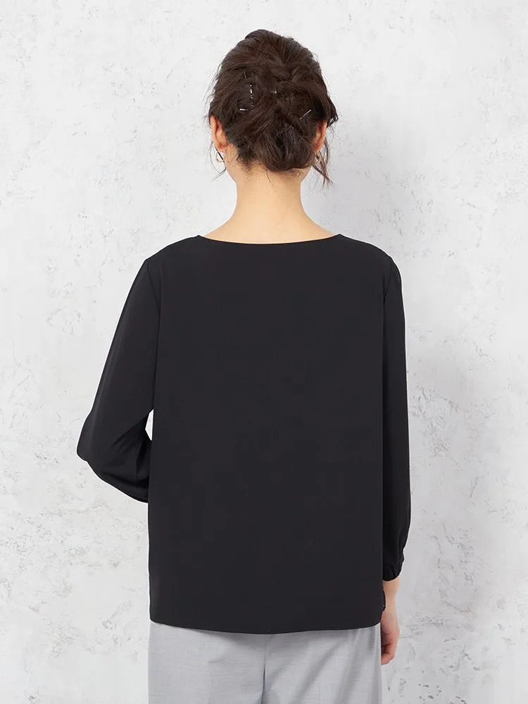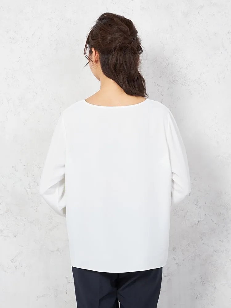 防シワ性に優れ、タテ・ヨコに伸びる2WAYストレッチ素材の7分袖ブラウスです。