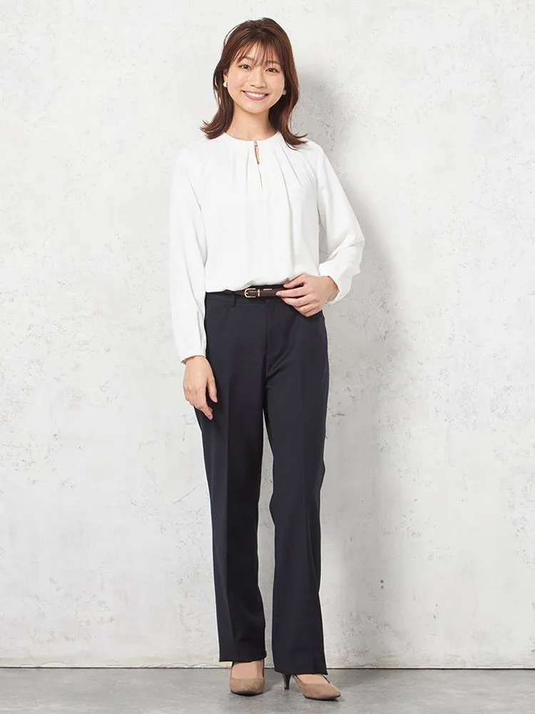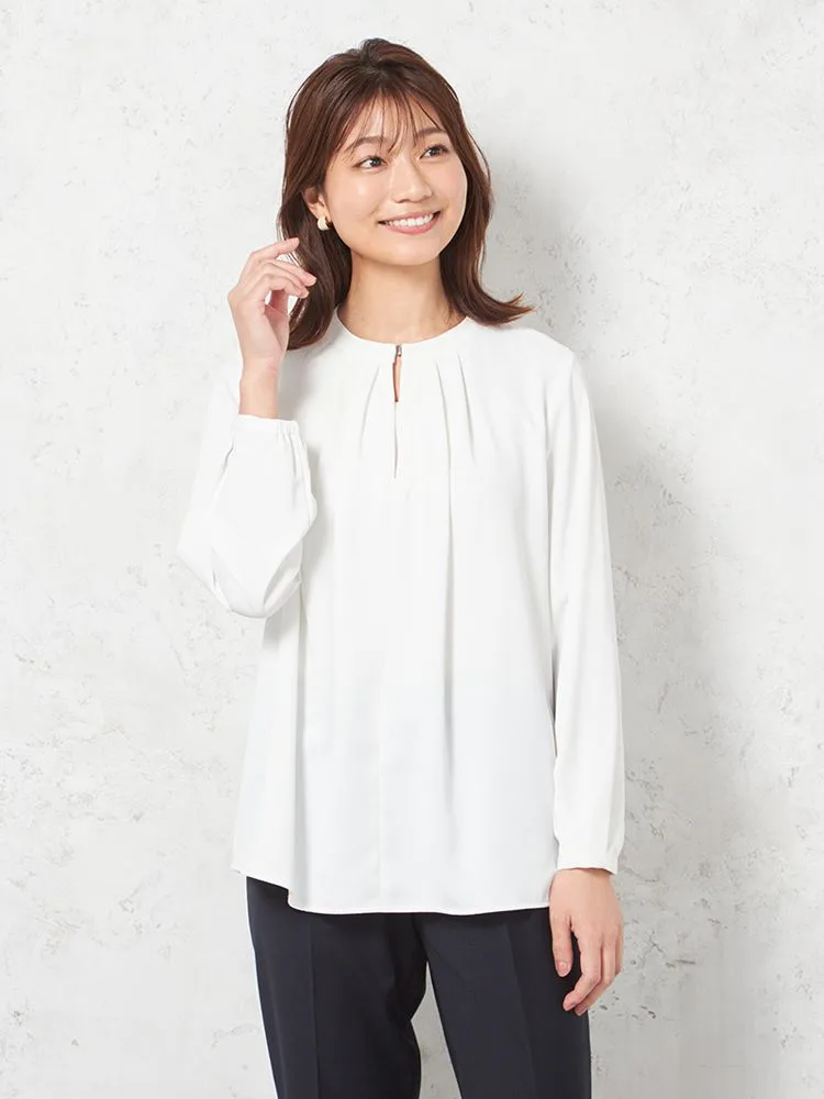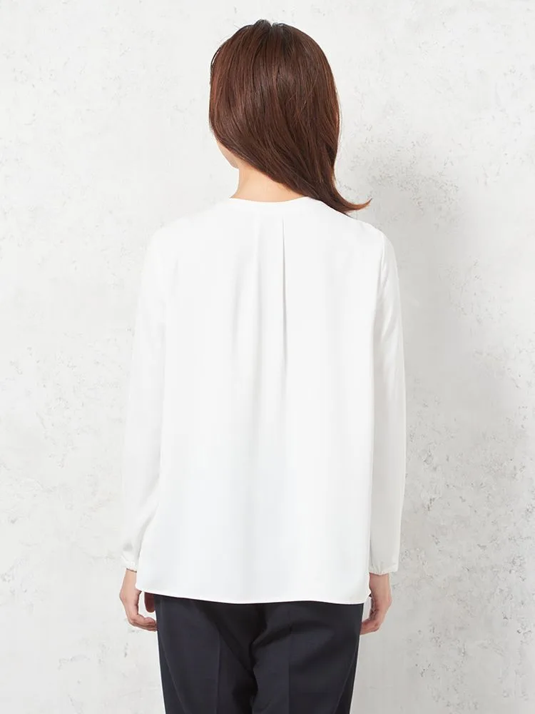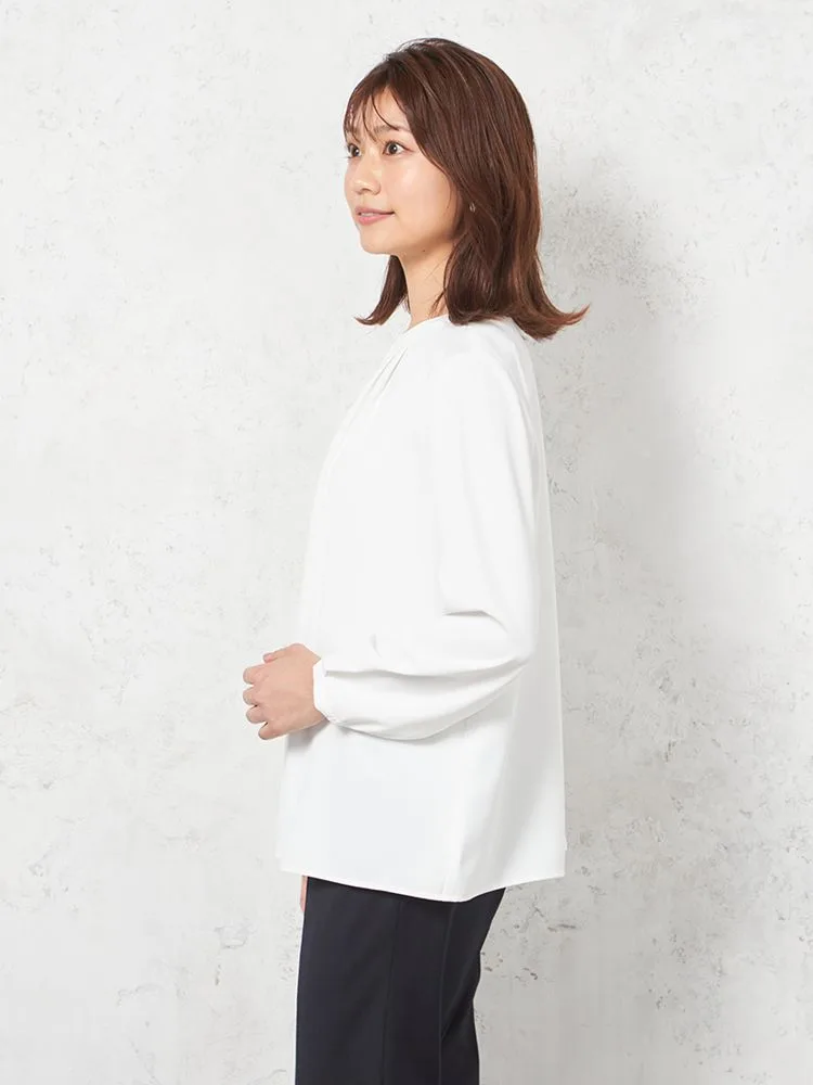 【ウォッシャブル】ブラウス 長袖 クルーネックプルオーバータックブラウス 透けにくい ストレッチ 無地 SOFFICE 通年【レディース】(オフホワイト)
