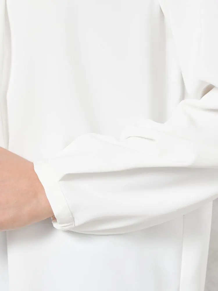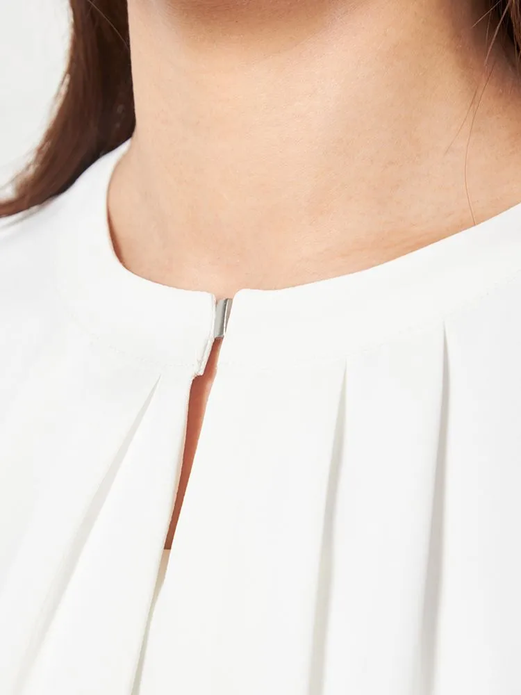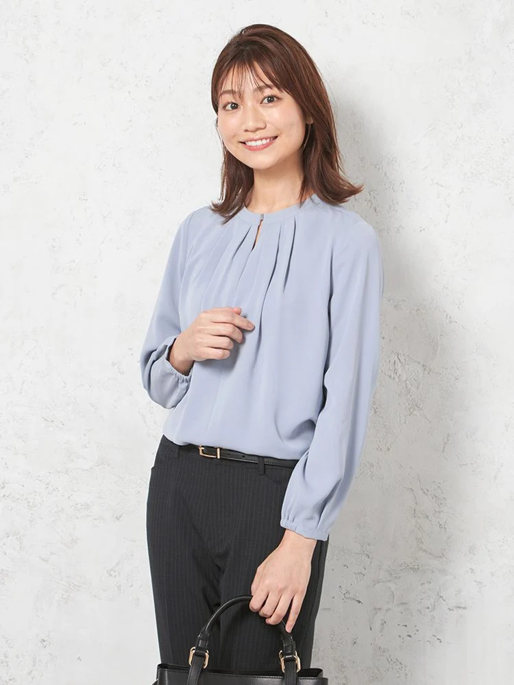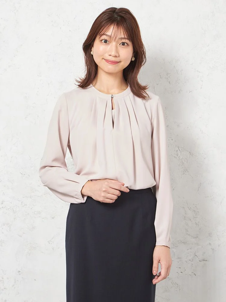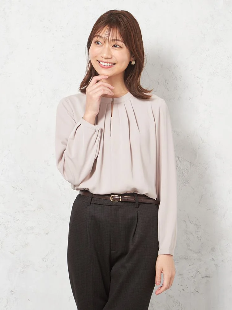 【ウォッシャブル】ブラウス 長袖 クルーネックプルオーバータックブラウス 透けにくい ストレッチ 無地 SOFFICE 通年【レディース】(オフホワイト)
