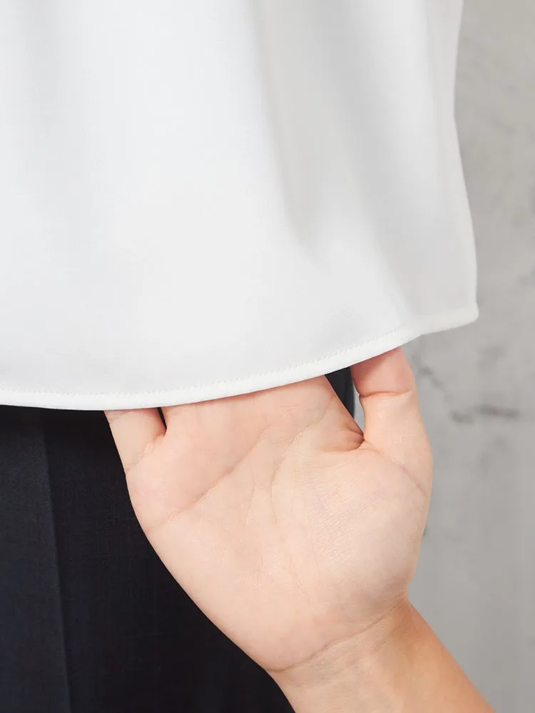 【ウォッシャブル】7分袖袖プリーツブラウスUVカット透けにくい2枚仕立て無地SOFFICE春夏【レディース】