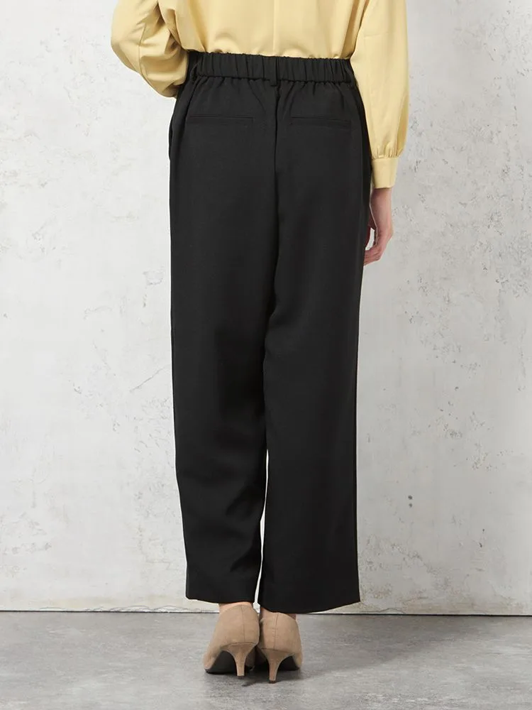 【ウォッシャブル】テーパードパンツ裏起毛2WAYストレッチワンタック無地秋冬【レディース】