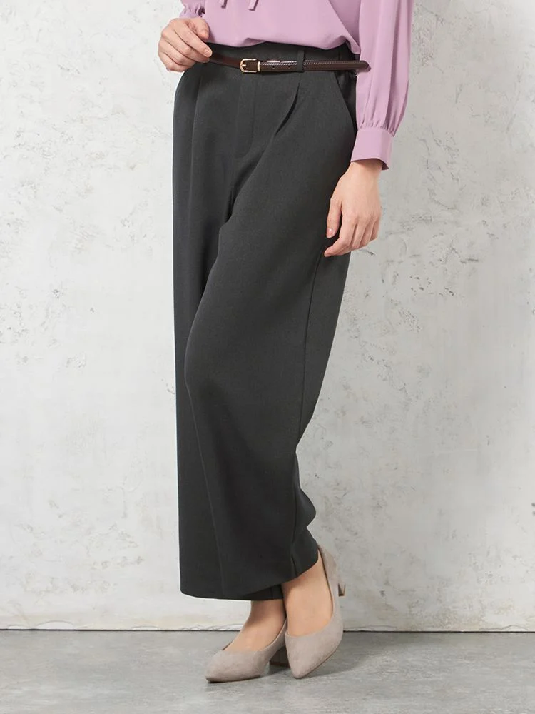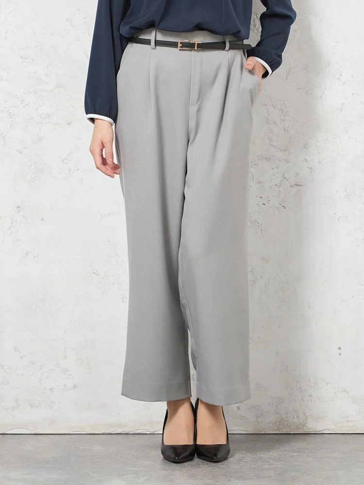 【ウォッシャブル】ワイドパンツ ウーリッシュ 2WAYストレッチ ワンタック 無地 秋冬【レディース】(C.グレー)