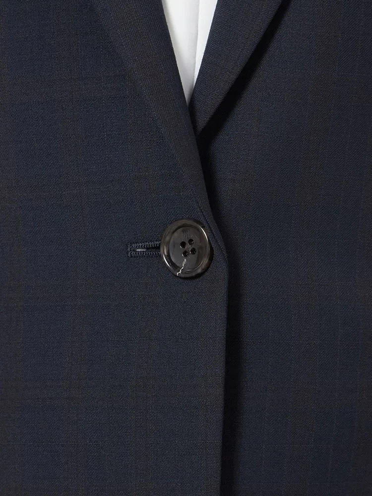 【働ラク肩ラクスーツ】ジャケット 1つボタン ウォッシャブル ストレッチ ネイビーチェック S&M WHITE 秋冬【レディース】