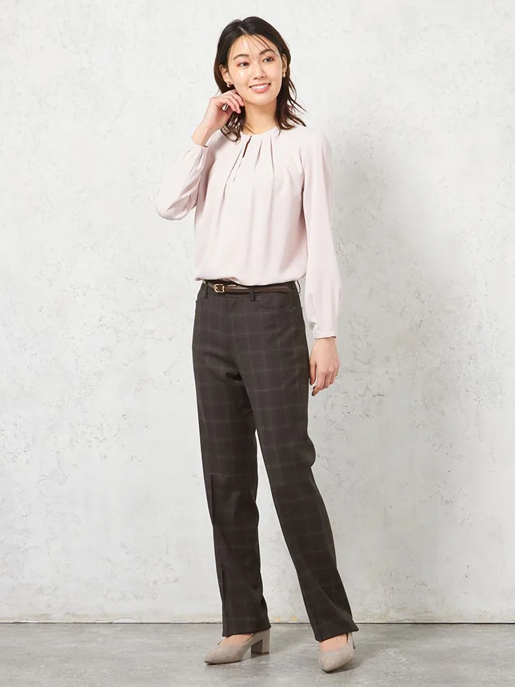 【ストレッチ】パンツ ストレート【REDA FLEXO】ストレッチインベル ブラウン チェック STOVEL&MASON 秋冬【レディース】