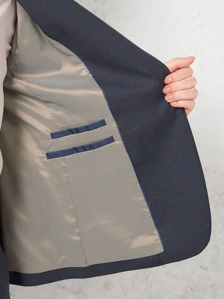 上品さや清潔感があるネイビーを基調としたチェック柄のテーラードジャケット。