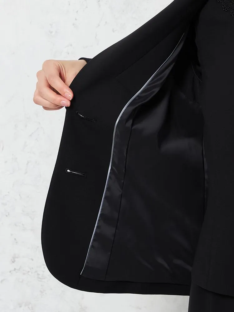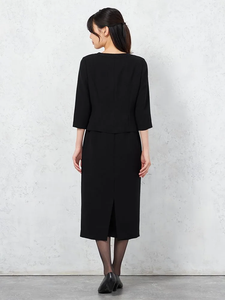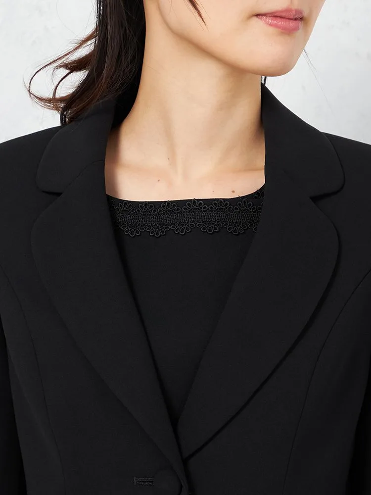 【ウォッシャブル】フォーマル ジャケット/前開きレース衿ワンピース アンサンブル ストレッチ 黒無地 STOVEL&MASON WHITE 通年 礼服【レディース】