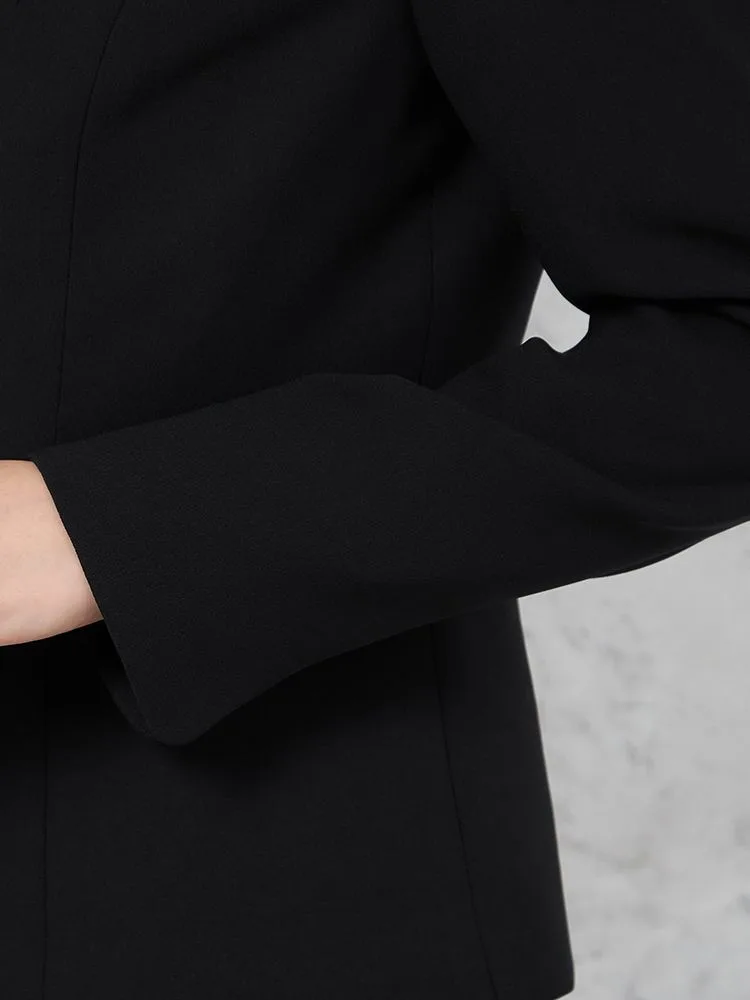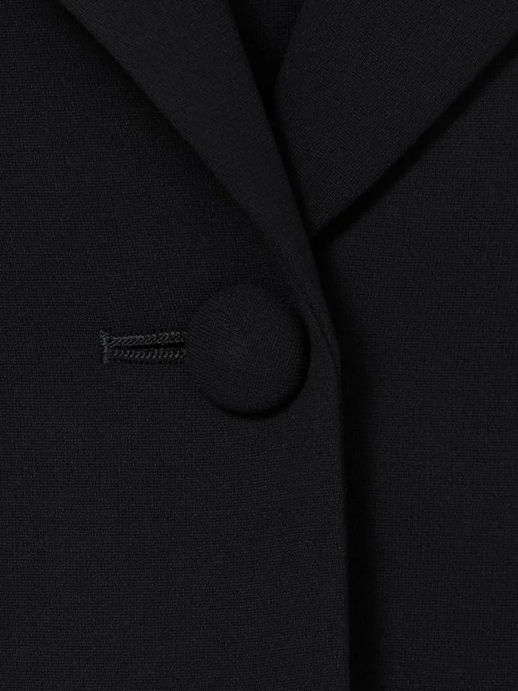 年齢を重ねても安心してご着用いただける2つボタンのテーラードジャケットは、衿に丸みがあり、やわらかい印象を与えてくれます。