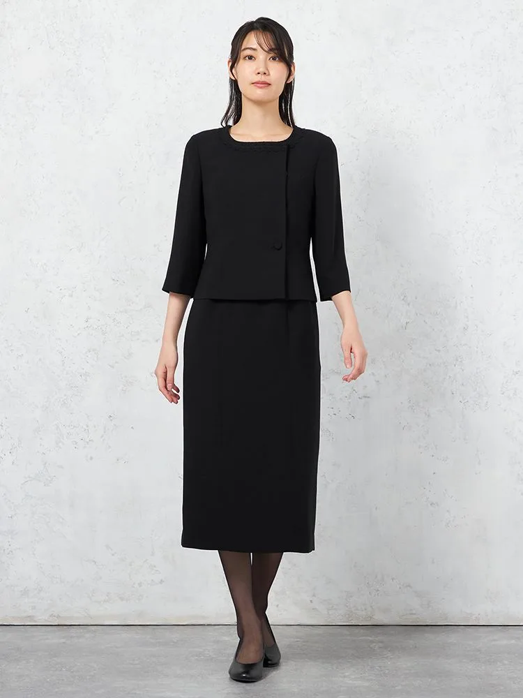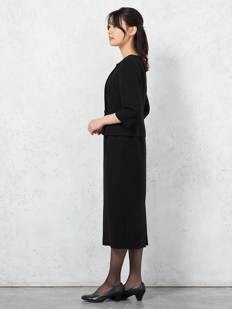 【フォーマル2点セット】スタンドカラージャケット/前開きワンピースアンサンブルウォッシャブルストレッチブラック通年礼服SOFFICE【レディース】