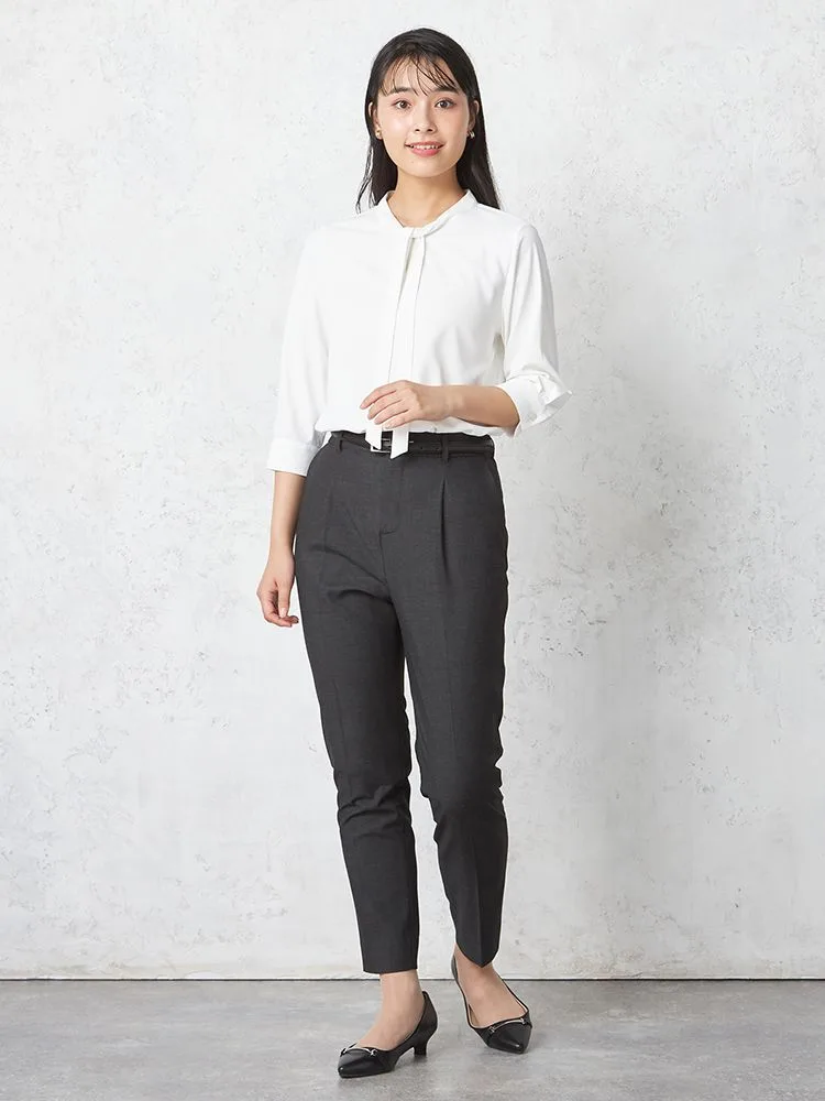 スリムなボウタイでクラシカルモダンな雰囲気に仕上げたブラウス。