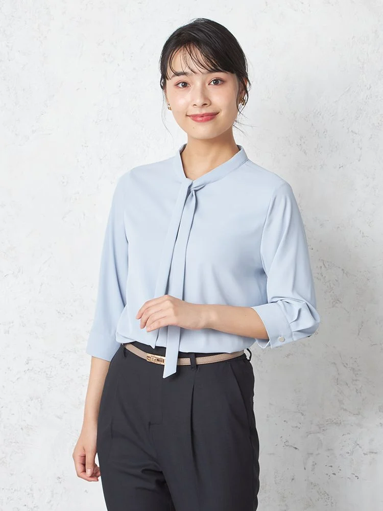 【SOFFICE】デシンボウタイ7分袖ブラウスニット・カットソー無地ウォッシャブル通年【レディース】