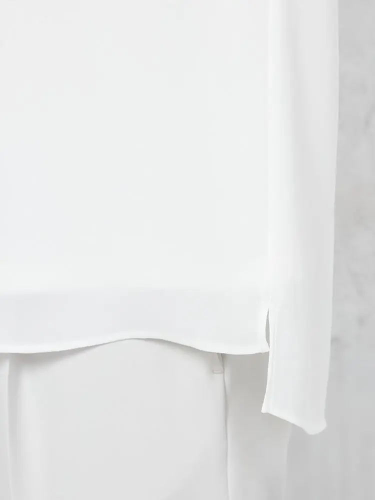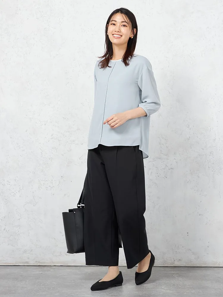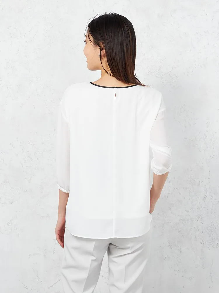 しなやかなドレープ感のある風合いが特長のジョーゼット素材で仕立てた、7分袖プルオーバー。