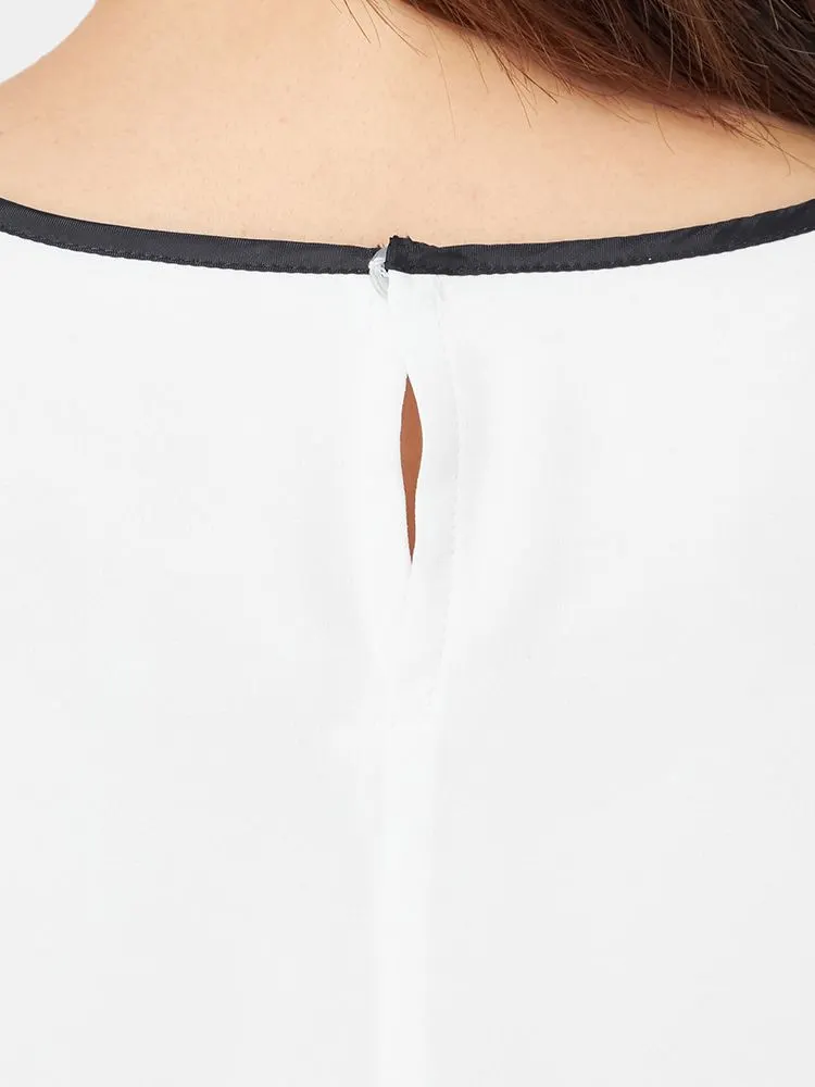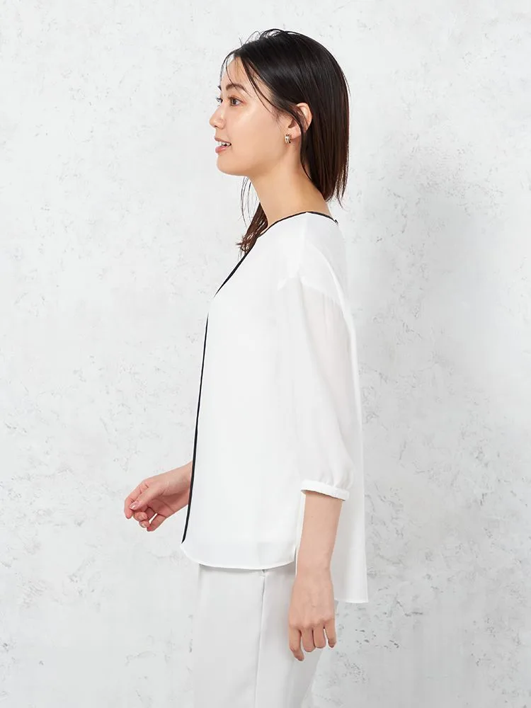 【INDIVI】ブラウス 7分袖 ジョーゼット 2枚重ね 配色パイピングブラウス ウォッシャブル 無地 通年【レディース】(S.ブルー)