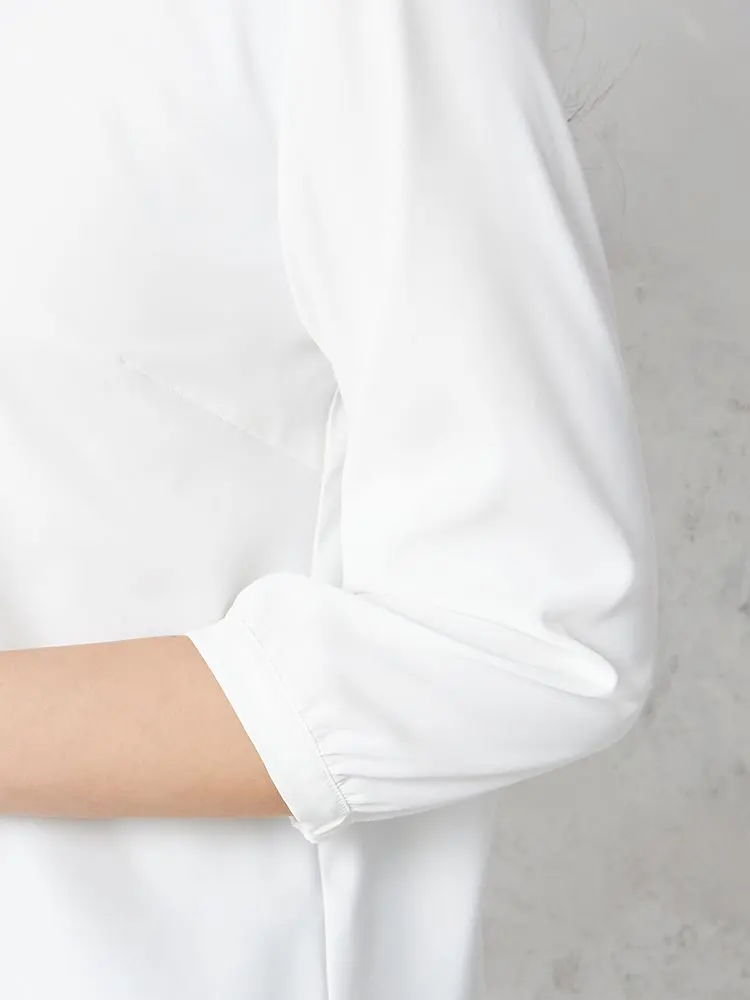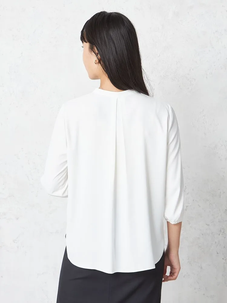 【INDIVI】ブラウス 7分袖 ツイル ストレッチ タックブラウス ウォッシャブル 無地 通年【レディース】(オフホワイト)