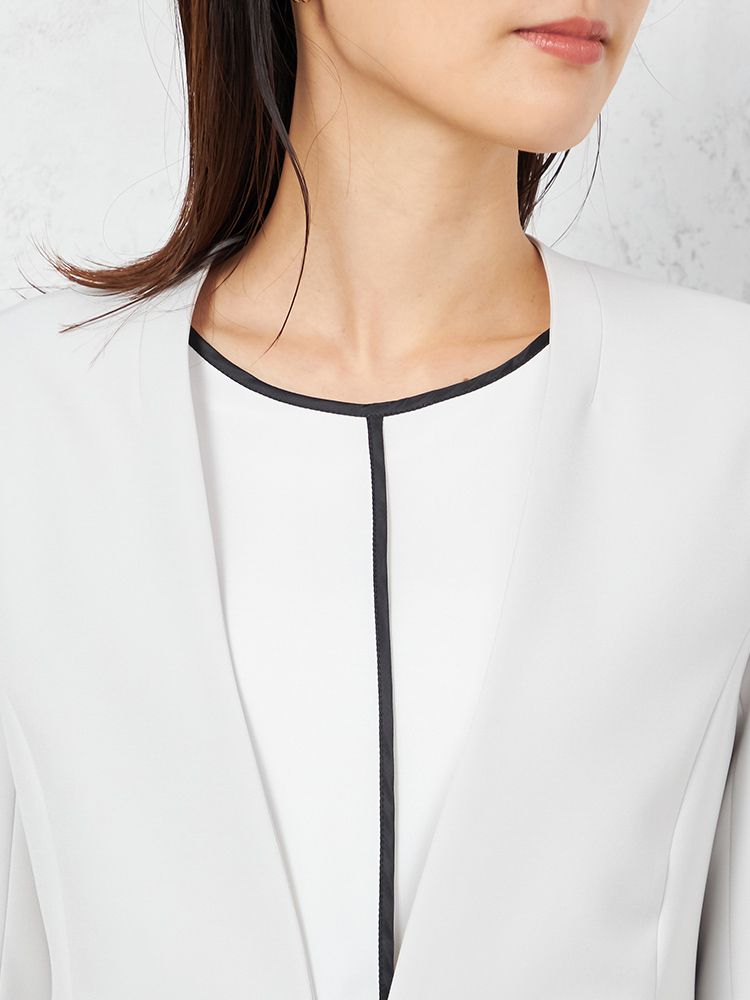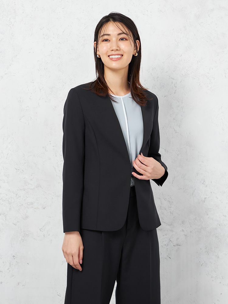 ハンサムなスタイリングを演出してくれる、クリーンな表情のノーカラージャケット。