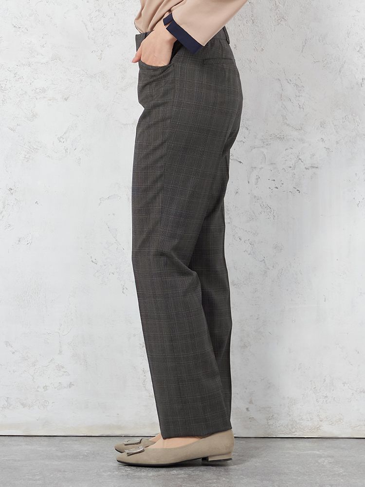 【ストレッチ】パンツストレート【REDAFLEXO】ストレッチインベルグレーチェックSTOVEL&MASON秋冬【レディース】