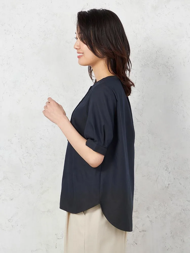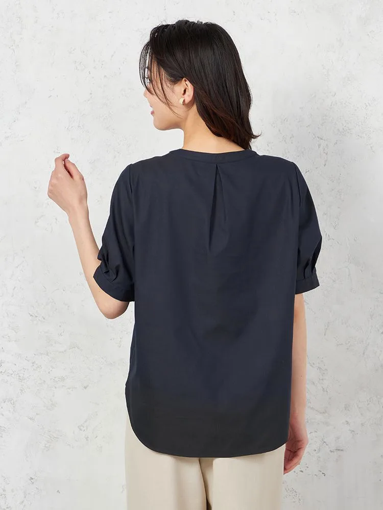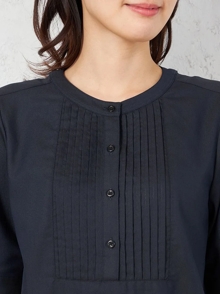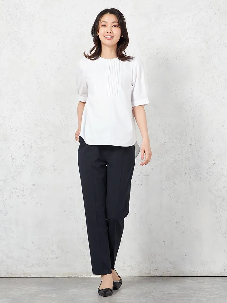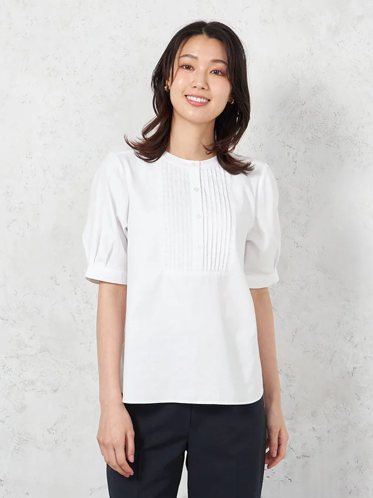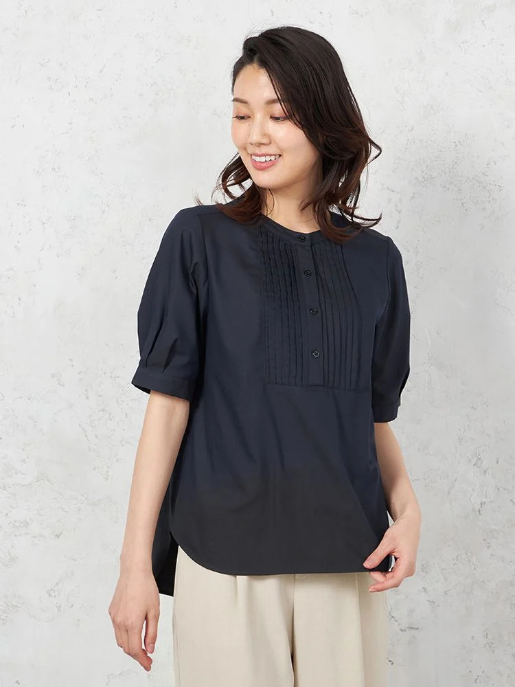 フロントにあしらわれたピンタックに視線が集まるブラウスです。