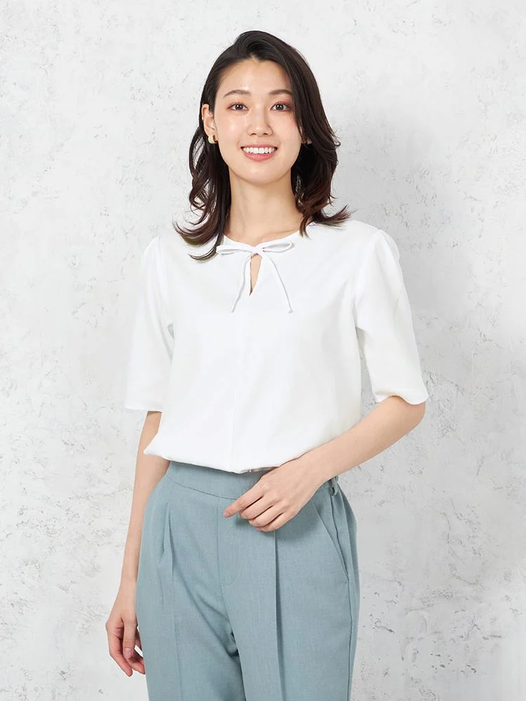 【UVカット】半袖 ピンタックブラウス 遮熱 透け防止 形態安定 無地 SOFFICE 春夏【レディース】(ホワイト)