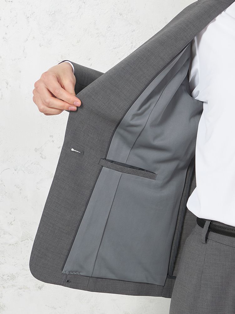 切り込みが1本のセンターベントデザインです。細身でスッキリとしたシルエットが特徴で、快適な着心地を提供します