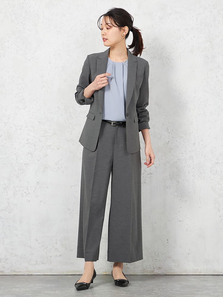 【ツーパンツスーツ上下セット】ジャケット/テーパードパンツ/ワイドパンツセット 上下ウォッシャブル ストレッチ 無地 SOFFICE 【レディース】(C.グレー)