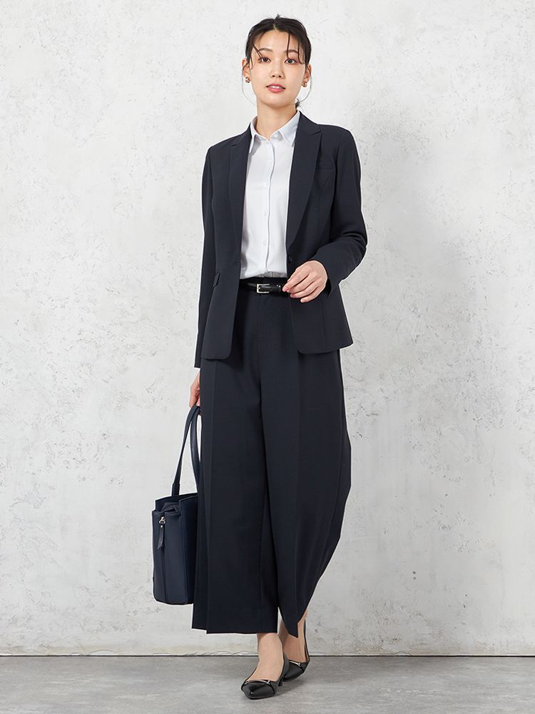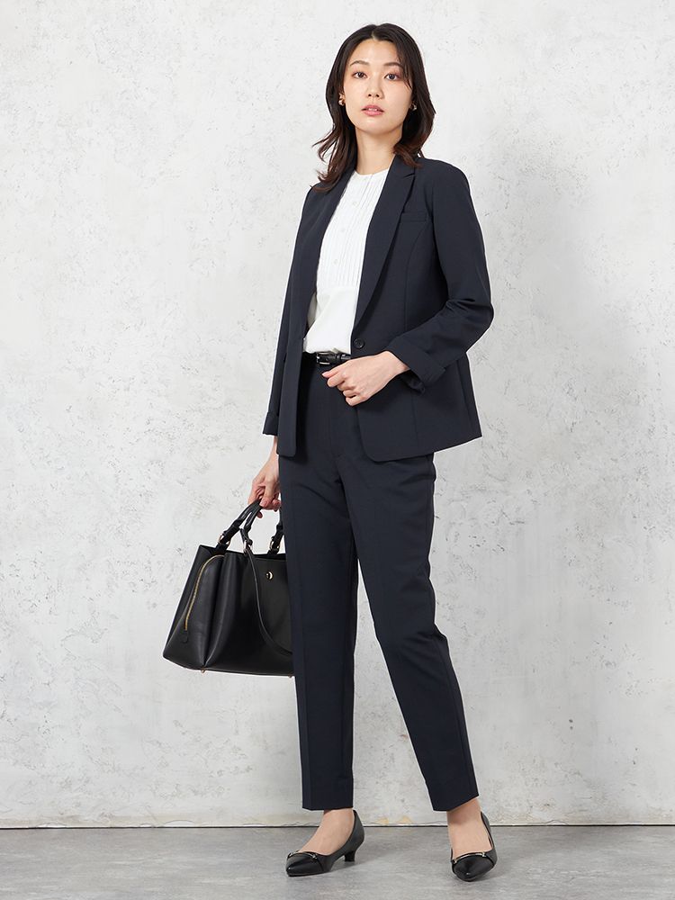 【即納】【パンツスーツ上下セット】ハイストレッチカラーレスジャケットパンツセット【WEB限定】秋冬【レディース】