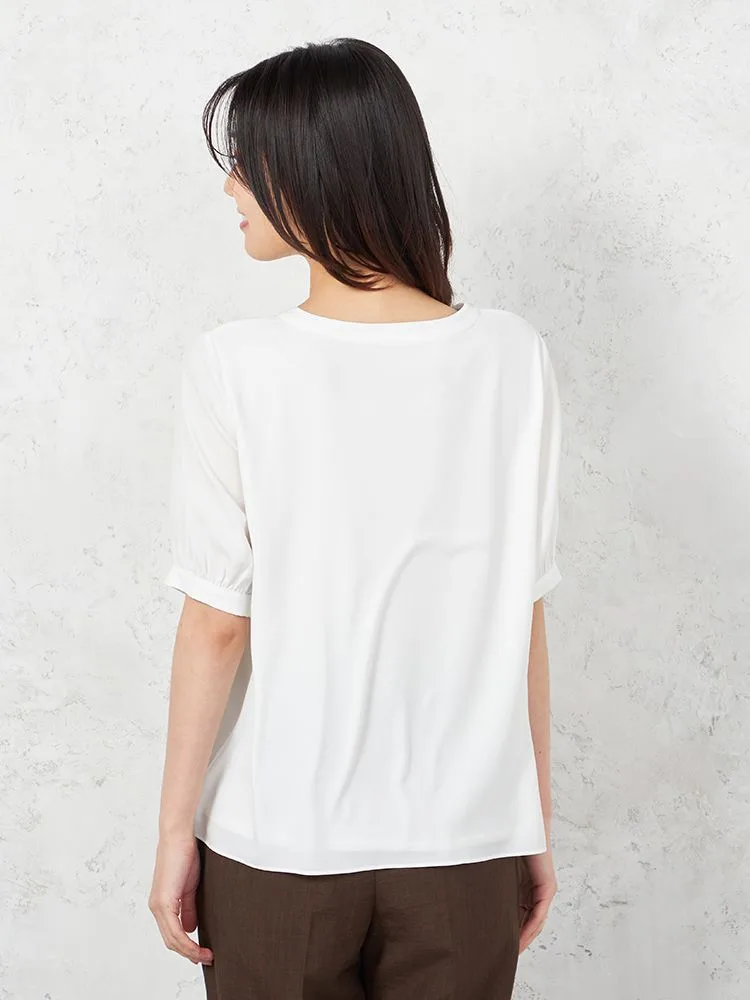 • オフホワイト 【ウォッシャブル】5分袖 フロントパールブラウス UVカット 透けにくい 無地 SOFFICE 春夏【レディース】 1537760687