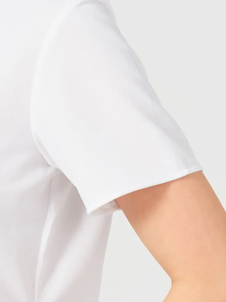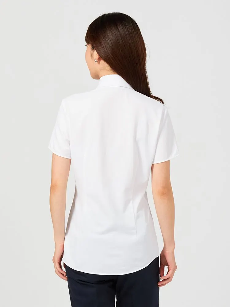 【完全ノーアイロン】半袖ブラウスi-shirt透け防止白無地レギュラーカラーアイシャツ春夏【レディース】