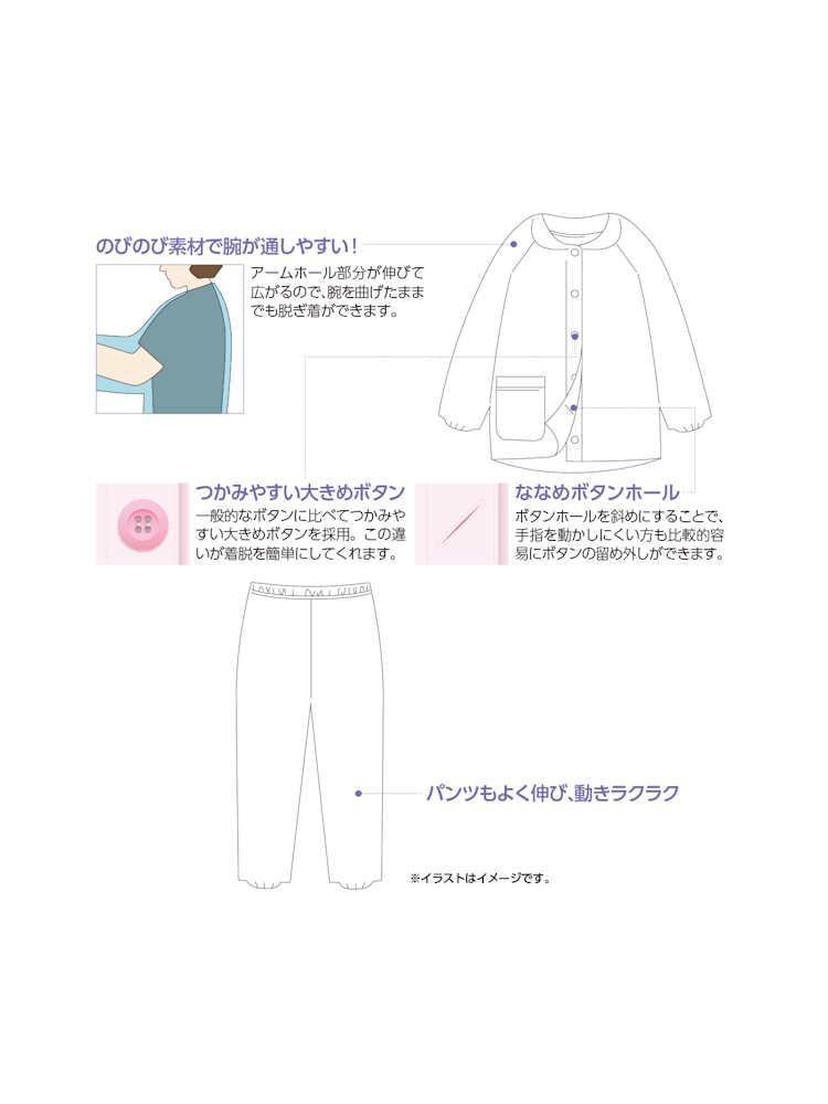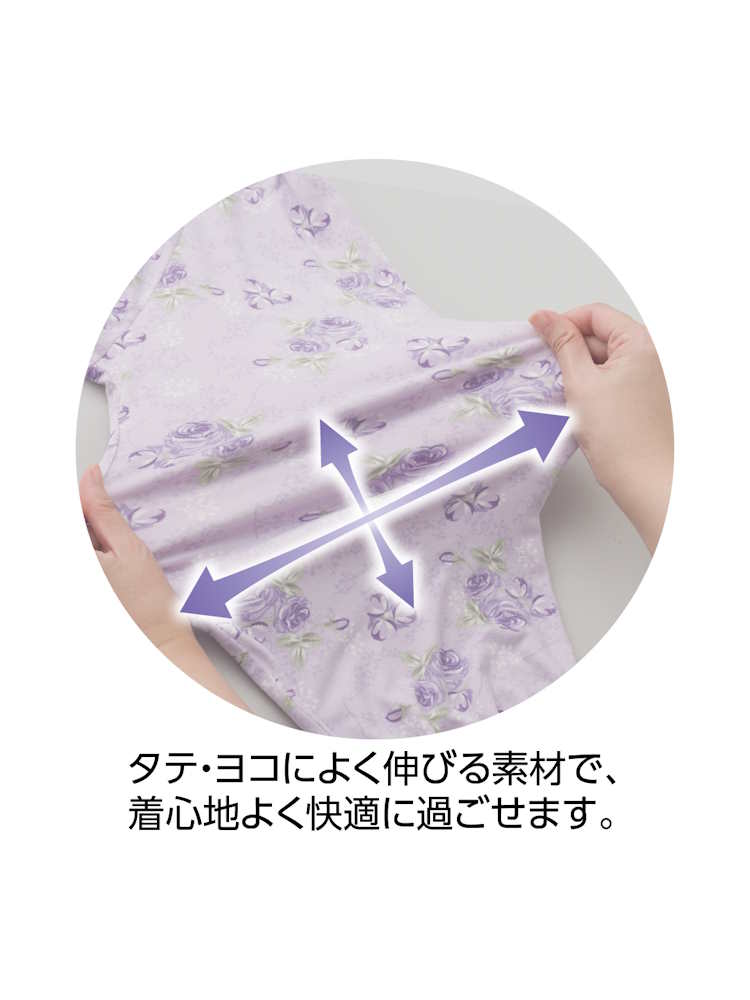 のびのびストレッチで着脱らくらく。袖口ゴムが交換できご自身に合った太さで着用できます。なめらかな風合いで気持ちいい。