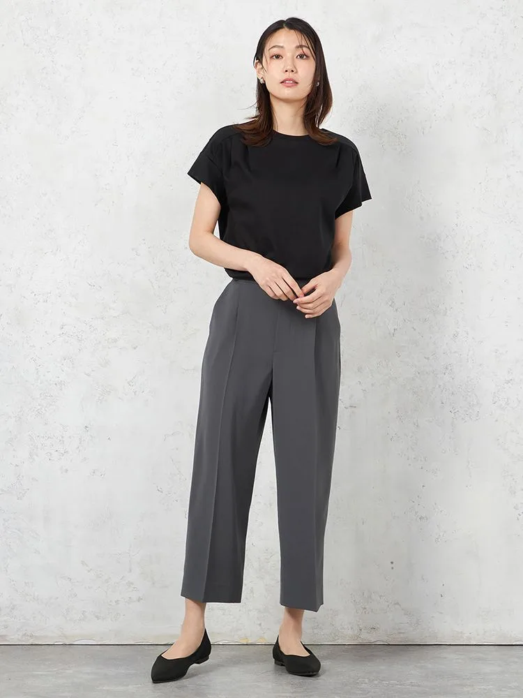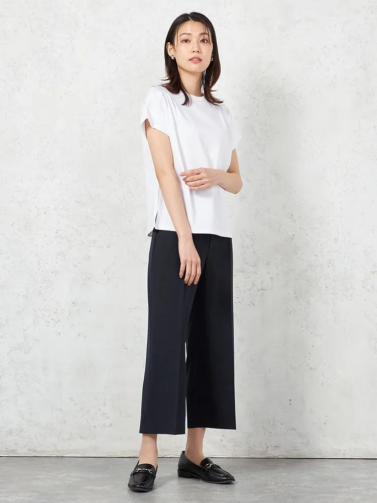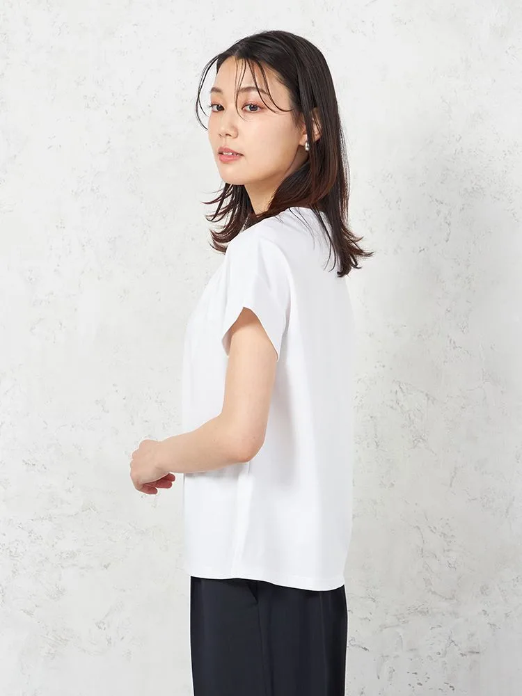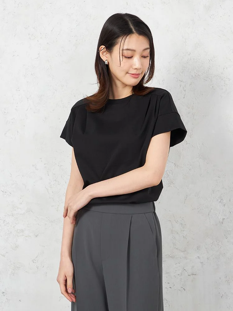 【INDIVI】ウォッシャブル ジャージフレンチスリーブカットソー 無地 【レディース】(ブラック)