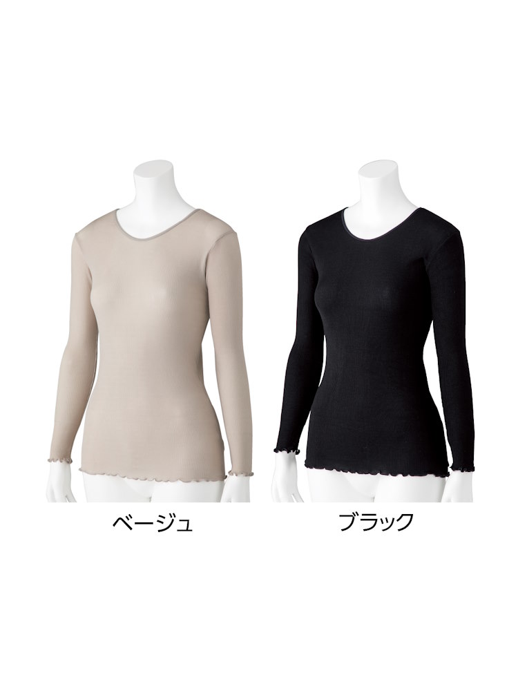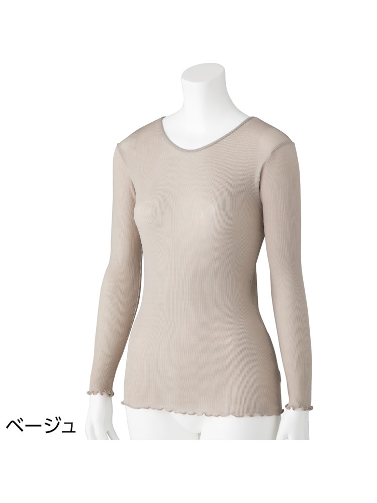 レディース スルッとのびのび長袖インナーラウンドネック【CF】(ベージュ)