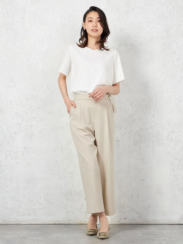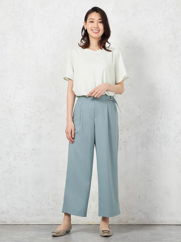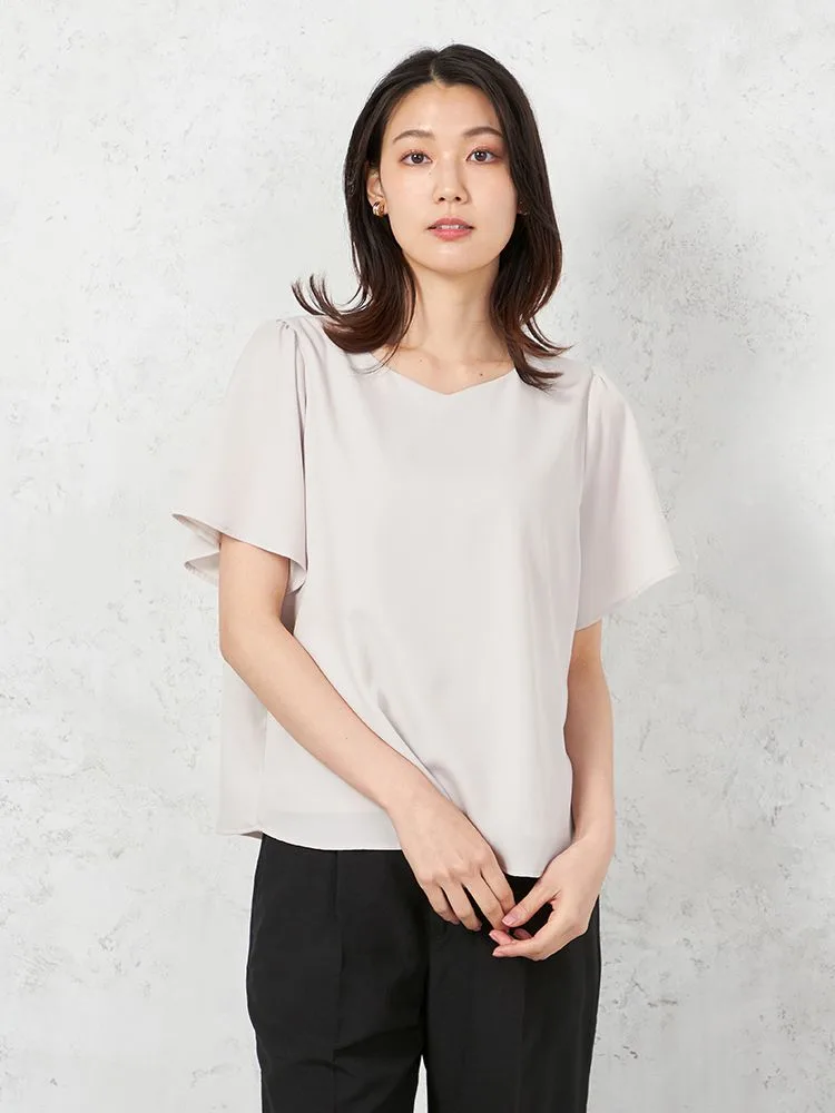 【ウォッシャブル】半袖 ハートネックブラウス 防臭抗菌 透けにくい 無地 SOFFICE 春夏【レディース】(ベージュ)