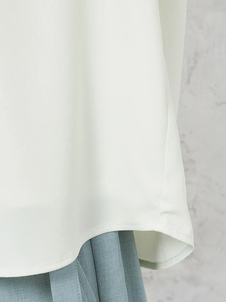 【透けにくい】ブラウス5分袖ハイネックタックデザイン無地SOFFICE春夏【レディース】