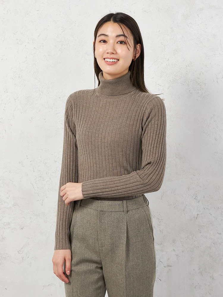 着回しやすいワイドリブタートルネックニット。