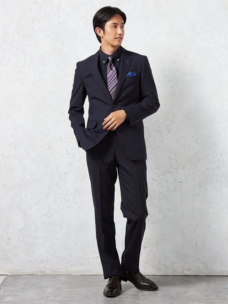 【即納】【WEB限定】スーツ2つボタンネイビーシャドウストライプ上下ウォッシャブル3シーズン対応