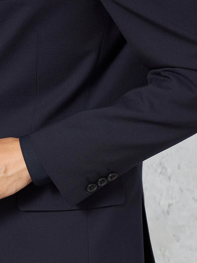 ほぼ無地に近いマイクロチェック柄。深みのあるネイビーの色で、デイリーに使いやすくなっています。