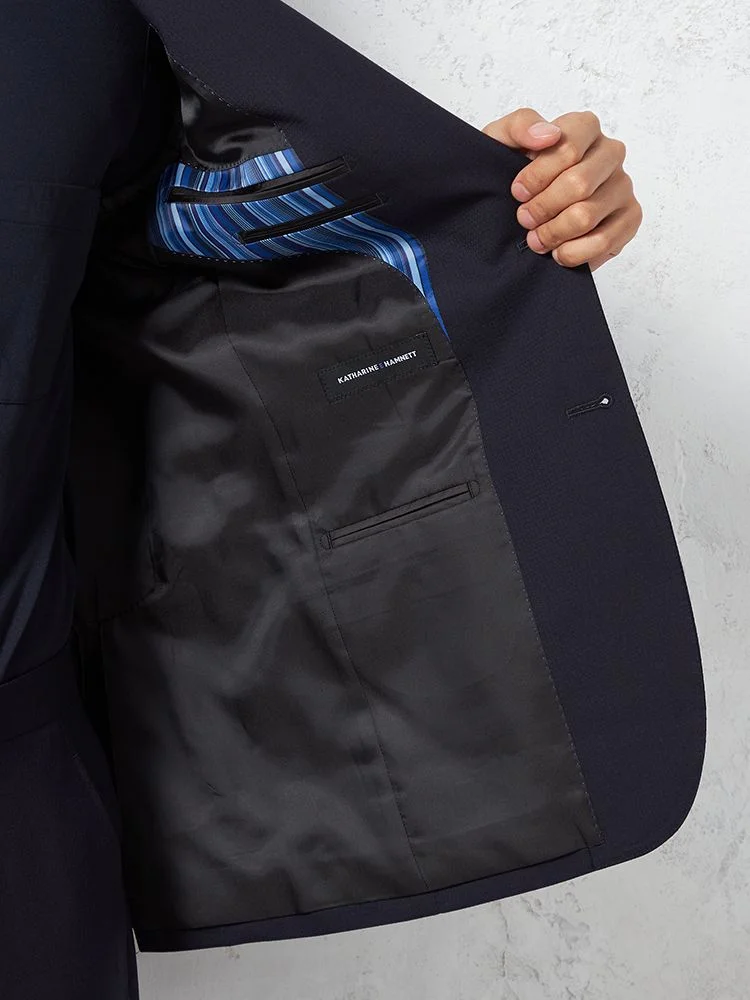 【KATHARINE E HAMNETT-キャサリン・イー・ハムネット-】スーツ 2つボタン 上下ウォッシャブル サスティナブルウール ネイビー 織柄無地 秋冬