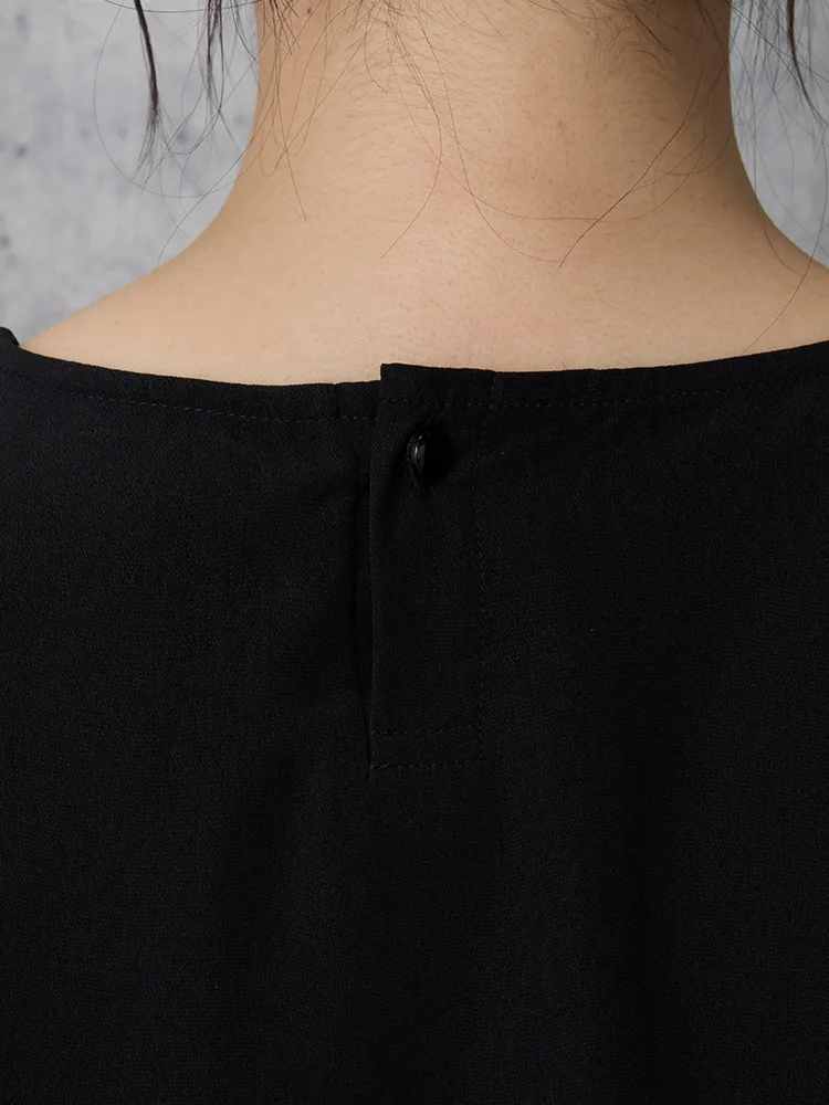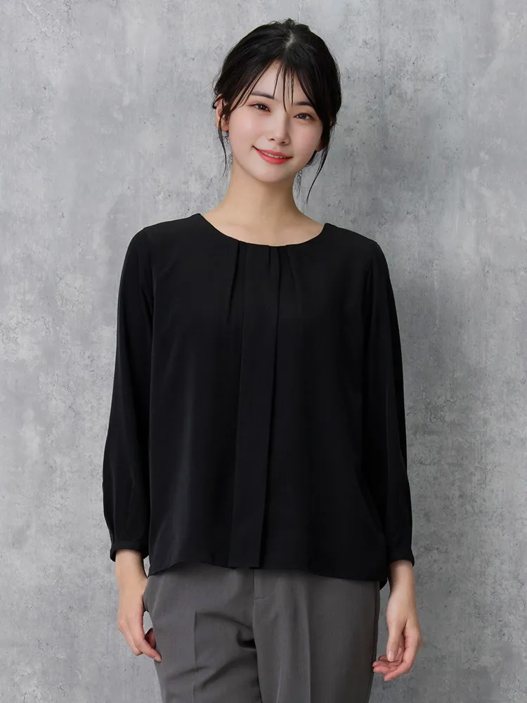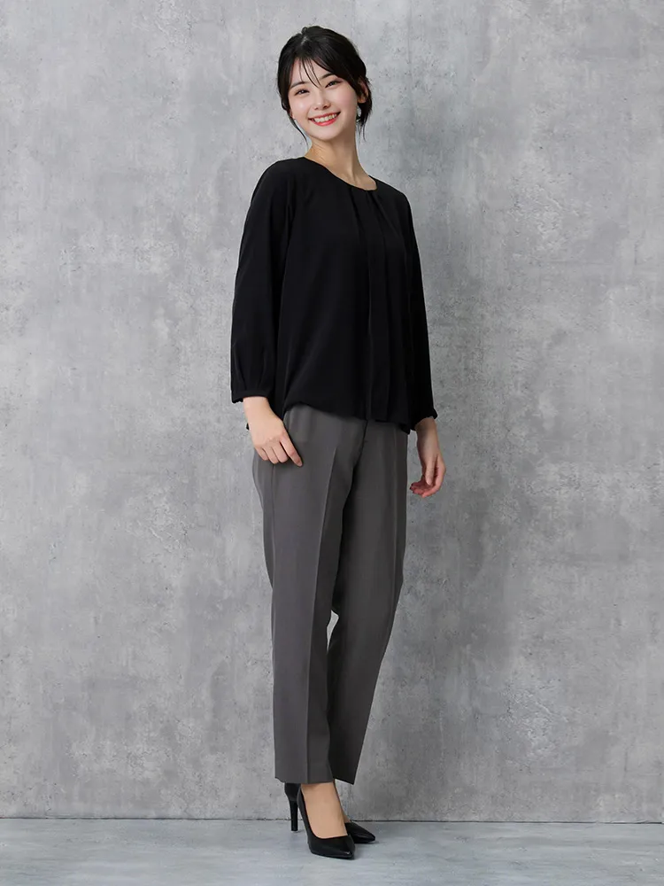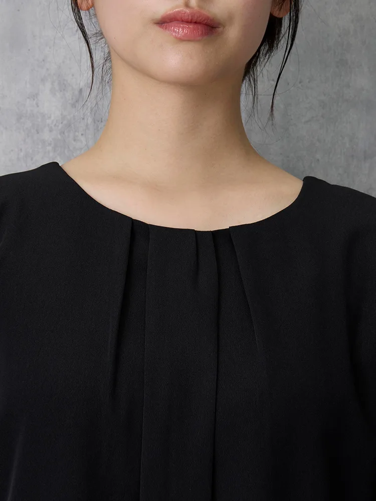 【透けにくい】タックブラウス 8分袖 2枚仕立て ウォッシャブル SOFFICE 通年【レディース】(ブラック)