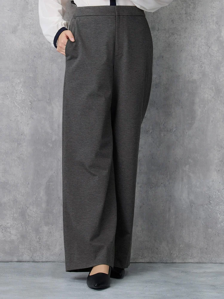 【働ラク肩ラクスーツ】パンツストレートウォッシャブルストレッチグレーストライプS&MWHITE秋冬【レディース】
