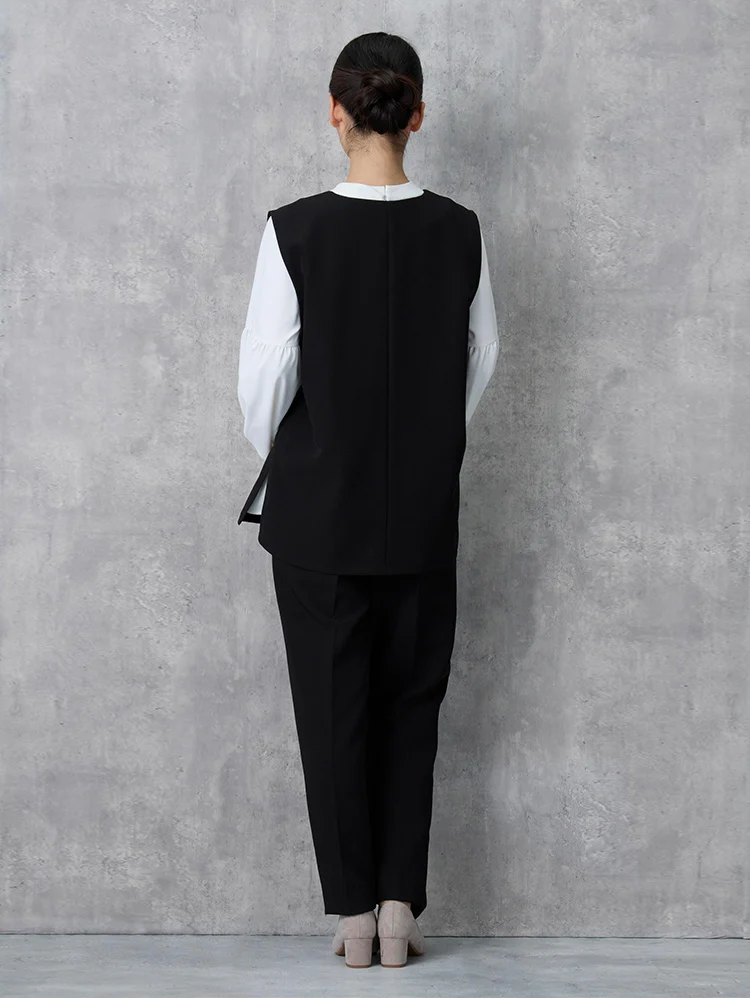 【ジレ3点セット】フォーマル ウエストリボン ジレ/パンツ/ブラウス ウォッシャブル ストレッチ セレモニー 通年 礼服【レディース】