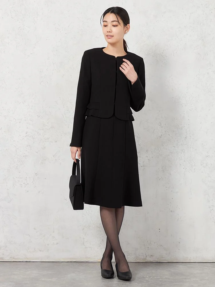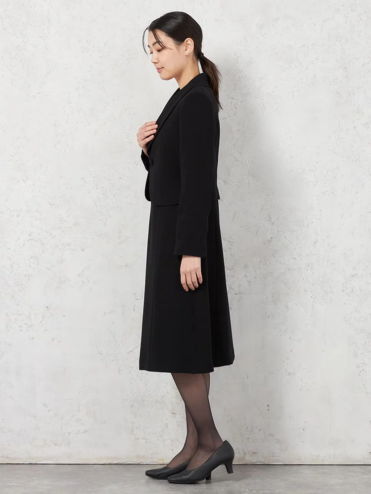 【即納】【WEB限定フォーマル】 ショールカラーアンサンブル ジャケット/ワンピース 黒無地 通年 礼服【レディース】