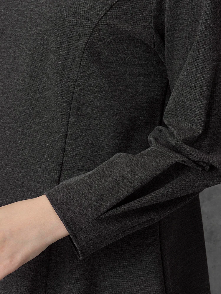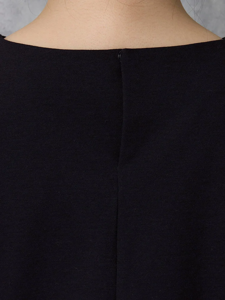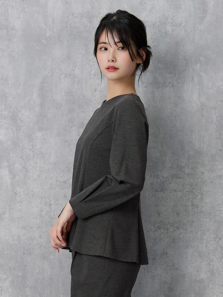 伸縮性あるジャージ素材なので、きちんと感とラクちん感を両方叶えるブラウスです。