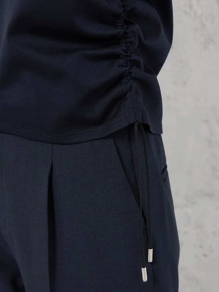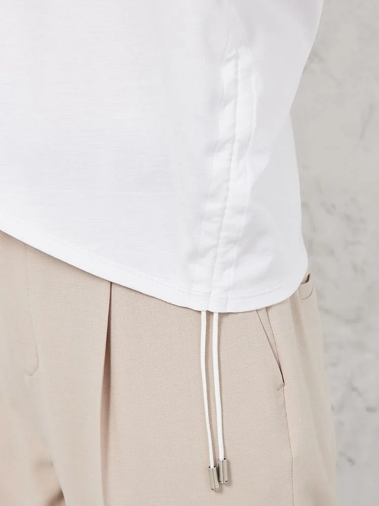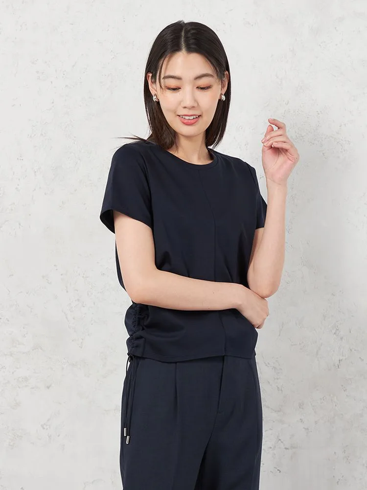 両サイドのドロストが目をひくTシャツです。